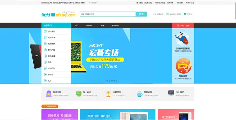 HTML5优分期大学生分期购物商城模板网站源码是一个功能丰富、设计美观的电商模板,专为大学生分期购物市场设计。通过集成先进的网页技术和丰富的功能模块,该模板能够为用户提供良好的购物体验,并帮助商家快速搭建起自己的分期购物商城。