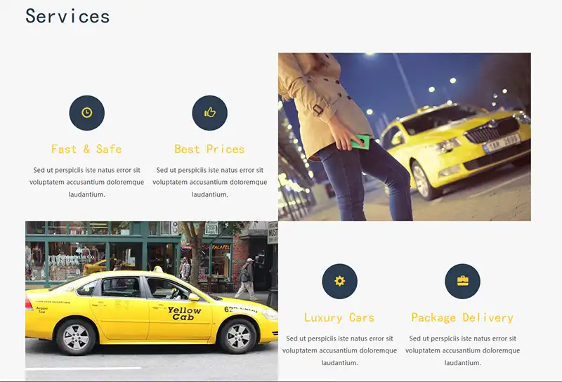 针对的士出租车行业的HTML网站模板,是专为出租车公司设计的一种网页布局方案,旨在帮助出租车公司快速构建自己的在线平台,以展示服务、吸引客户并管理业务。以下是对这类HTML网站模板的详细介绍: