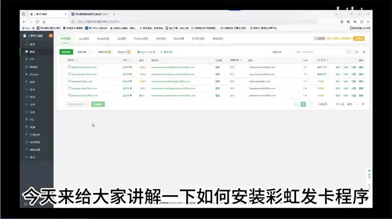 hello,大家好,今天来给大家讲解一下如何安装彩虹发卡程序,在我们的宝塔内,我们点击添加站点。然后在这里输入我们的一个域名,然后大家需要自己提前解析到我们的服务器上。然后我这里就输入一个faka.test.20idc.com,然后再创建数据库。然后P H P的话建议是七点零以上,然后我们点击创建。