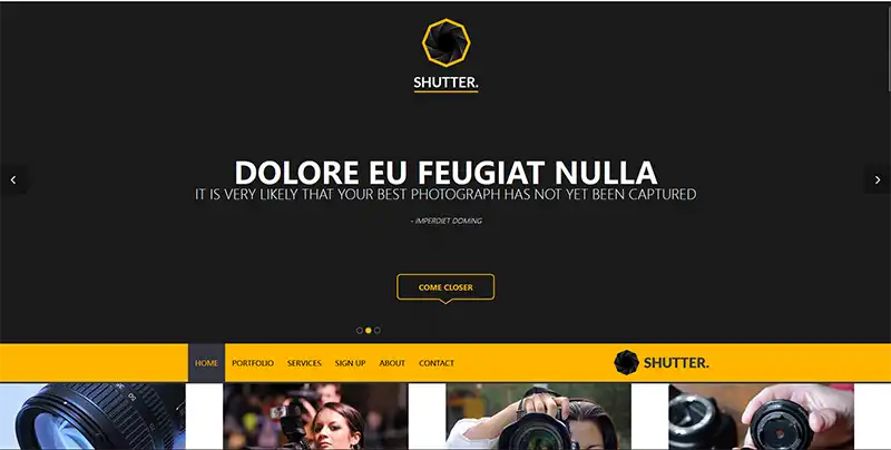 摄影工作室全站响应式模板:专为摄影工作室和摄影爱好者设计,具有大气的宽屏响应式布局和高端品牌形象。该模板包含多个功能模块,如图片展示轮播、作品集页面等,同时支持高度可定制化的选项和SEO优化。