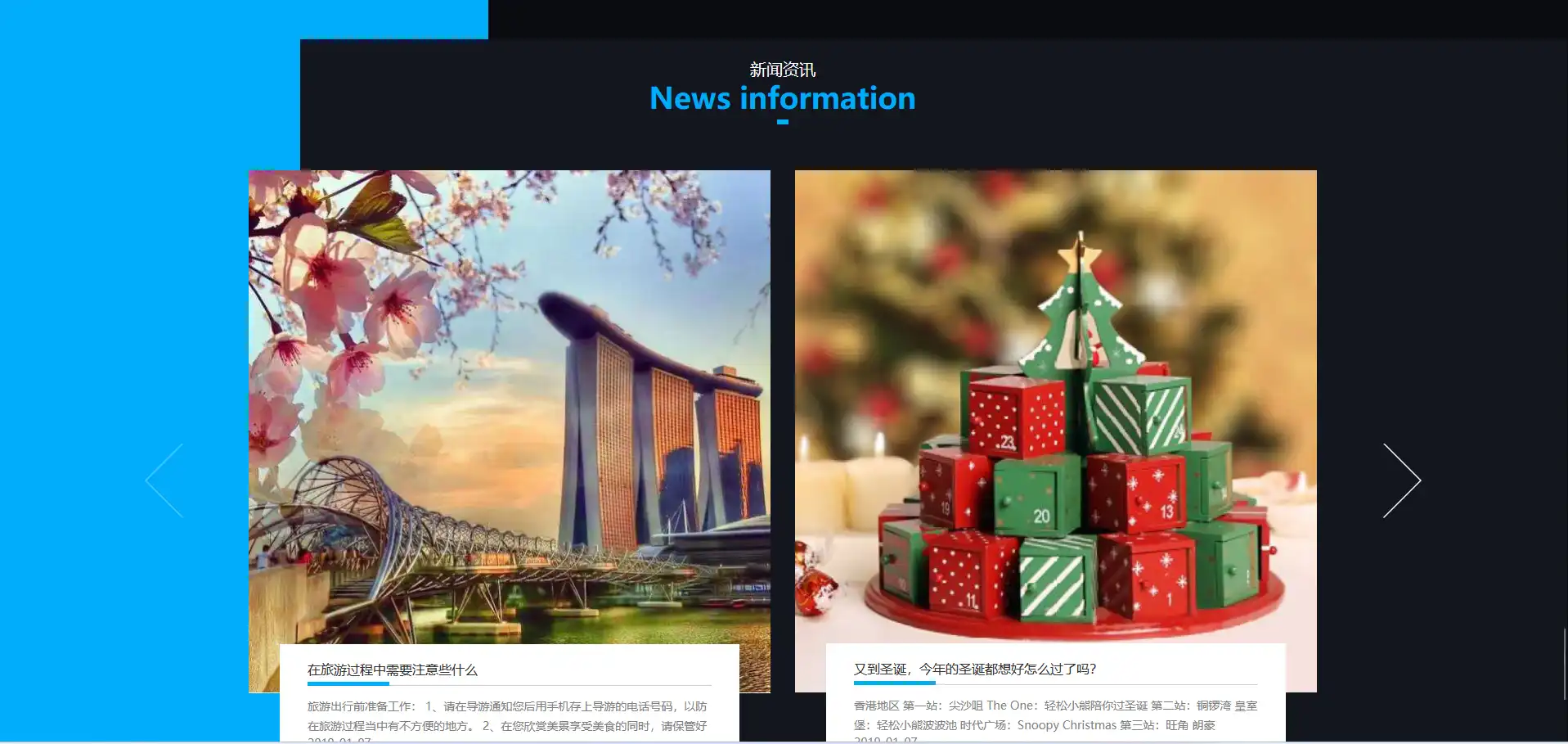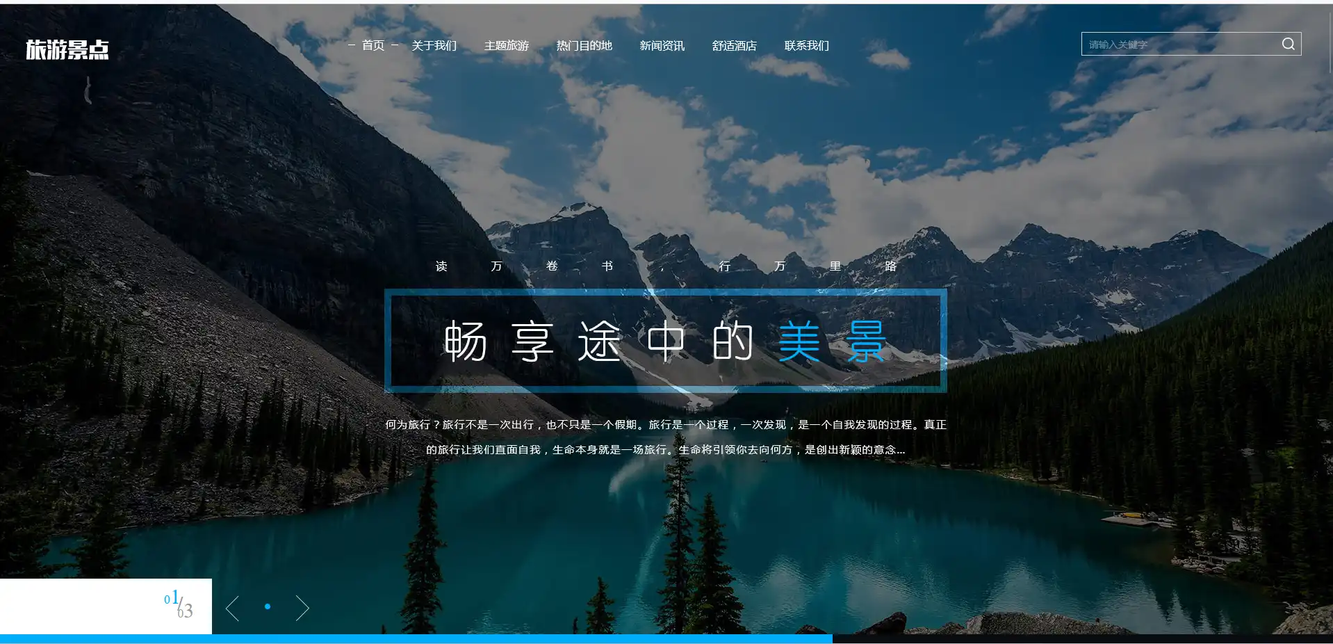2. 旅游景区展示 在首页突出展示旅游景区的特色和亮点。 使用高质量的图片和视频来展示景区的风景、景点和文化活动。 3. 旅行套餐与定制服务 提供多种旅行套餐选择,包括一日游、多日游、主题游等。 提供定制旅行服务,根据客户需求量身定制旅行计划。 4. 旅行攻略与指南 提供详细的旅行攻略和指南,包括交通、住宿、餐饮、购物等方面的信息。 提供行程建议和热门景点推荐,帮助游客更好地规划行程。 5. 在线预订与支付
