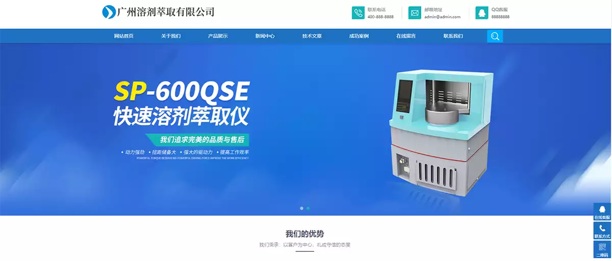 溶剂萃取仪器设备类网站PBootCMS模板是一种专门为此类企业设计的网站模板,基于PBootCMS内核开发。以下是该模板的一些主要特点和优势: