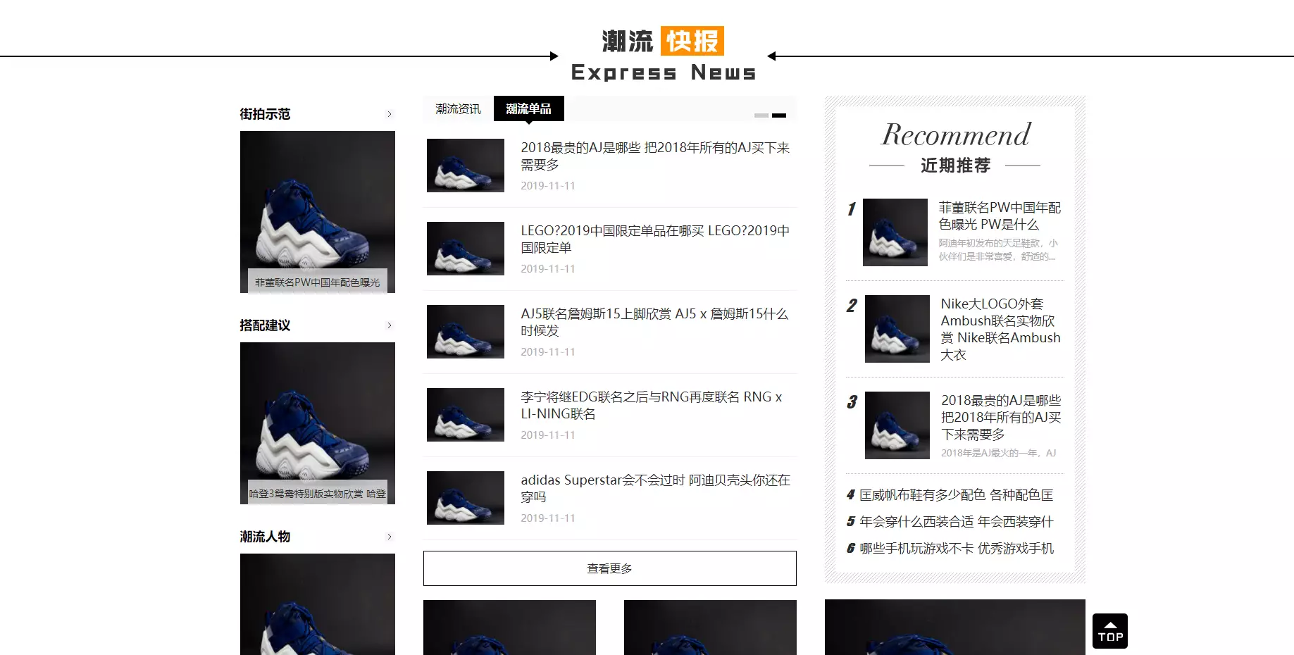 潮牌鞋球类新闻资讯pbootcms网站模板