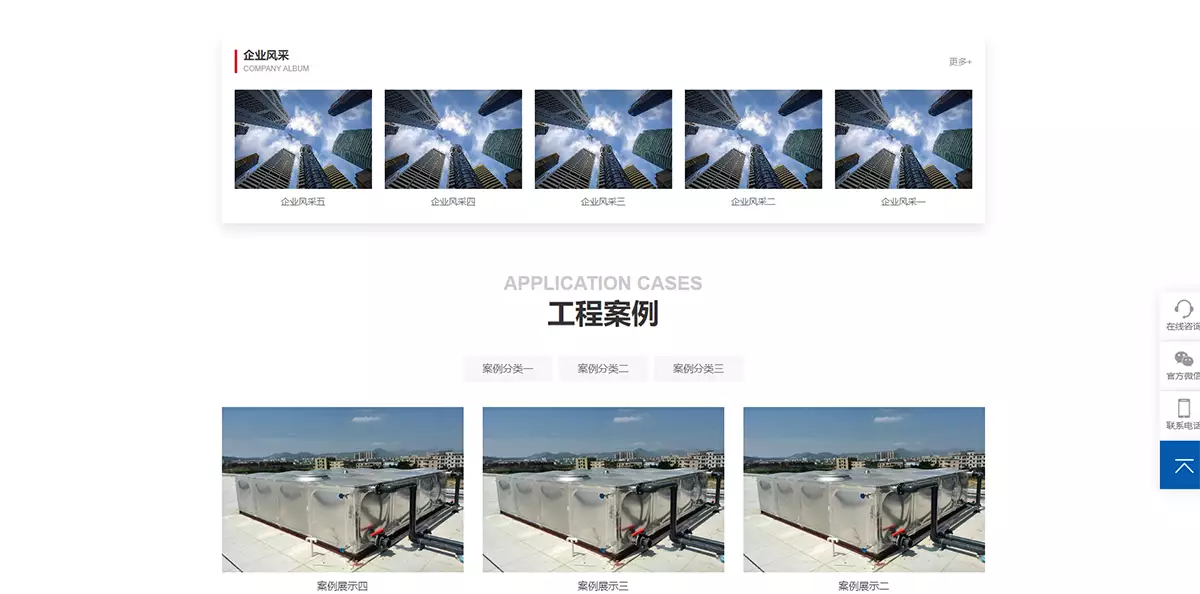 - 产品与技术展示:模板提供了丰富的产品和技术展示功能,包括产品分类、产品详情页、技术文档等。企业可以方便地展示供水环保设备的各种型号、规格、性能参数以及技术特点,帮助客户全面了解产品,提高购买决策的信心。
