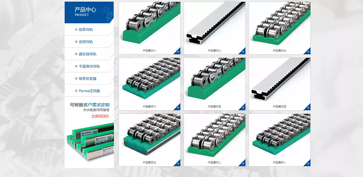 专业的产品展示:模板会提供专门的产品展示区,用于详细展示大气链条导轨张紧器的各种型号、规格、性能参数等信息。通过高清的产品图片和详细的技术说明,客户可以更直观地了解产品的特点和优势。