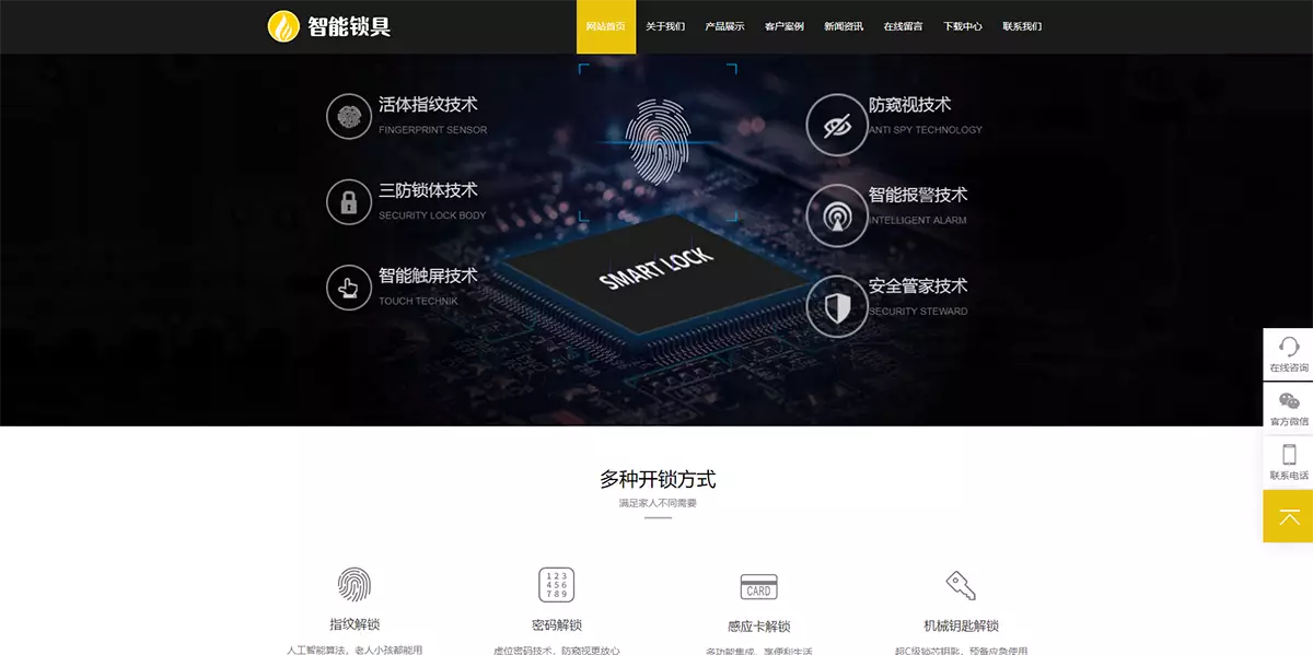 - 行业特色设计:模板设计会突出智能锁具行业的特色,运用现代、科技感的视觉元素,展示企业的创新能力和技术实力。同时,模板也会考虑到用户体验,确保网站的易用性和导航的清晰性。