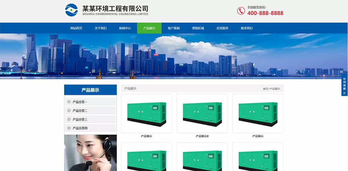 - 行业特色展示:针对环境工程设备行业的特点,模板提供了专门的产品展示区域,可以详细展示企业的设备产品、技术参数、应用场景等信息。