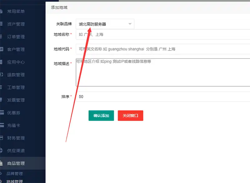什么是大区?大区相当于是 三级分类。比如我品牌设置了 湖北云服务器、地域设置了 湖北十堰。