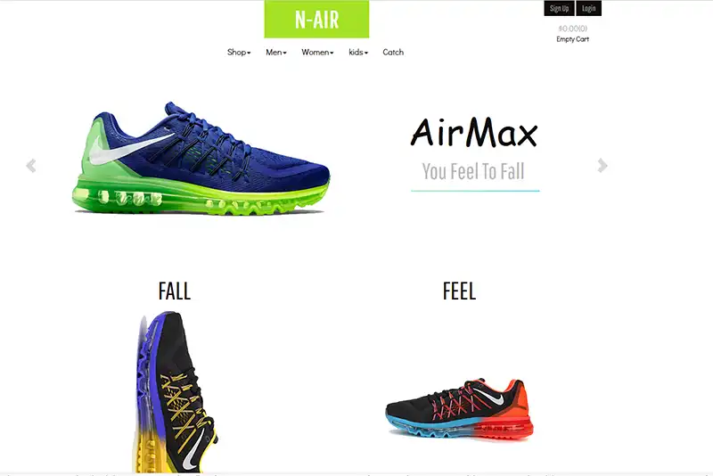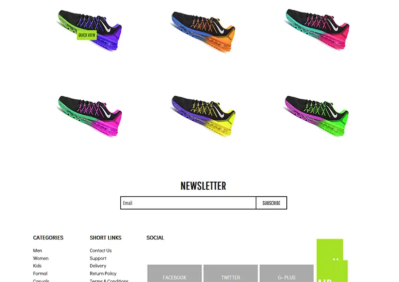 专业运动鞋风格:模板设计以运动鞋为主题,色彩搭配、图片选择和布局都体现出运动鞋的时尚与动感,吸引运动爱好者的关注。