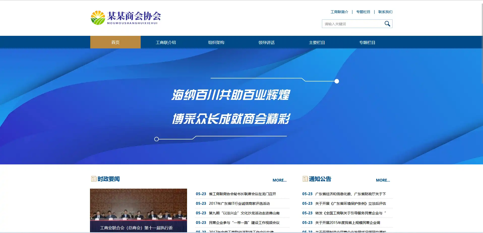 工商联合协会:用于展示协会形象、发布行业动态、促进会员交流。 行业组织机构:作为对外宣传的窗口,提高组织知名度和影响力。 商会、公会等团体:发布团体新闻、组织线上线下活动,加强会员联系。 三、附加价值: 技术支持与培训:提供全面的技术指导和培训服务,确保您能充分利用模板的各项功能。 定制化服务:根据协会的特定需求,提供定制化的页面设计和功能开发服务。 内容策划与推广:提供专业的网站内容策划建议和推广策略,提高网站曝光度和访问量。 数据分析与报告:定期提供网站数据统计和分析报告,帮助协会了解用户需求和市场趋势。 多语种支持:支持多语种内容发布和翻译功能,满足国际化的需求。 通过这款工商联合协会的响应式eyoucms网站模板,您将能够建立起一个专业、美观、功能丰富的网站,更好地服务于协会会员和广大业界人士。同时,该模板也将有助于提升协会的品牌形象和市场影响力,促进会员间的交流与合作。