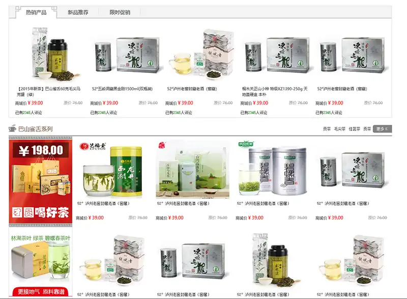 提供详细的茶叶分类,如绿茶、红茶、乌龙茶等,方便用户快速找到心仪的商品。