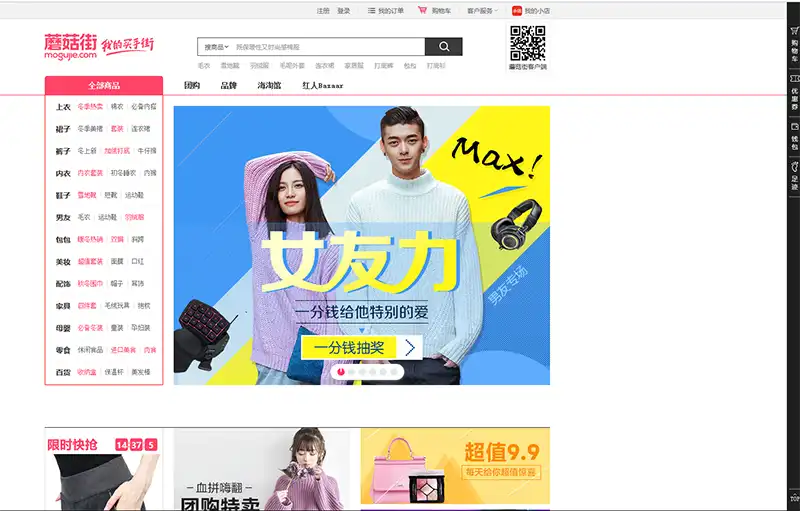 JavaScript:JavaScript用于实现网页的动态效果和交互功能。在蘑菇街商城的源码中,JavaScript用于实现如轮播图、商品筛选、购物车操作等动态效果。同时,JavaScript还用于与后端进行数据交互,如发送请求、接收响应等。