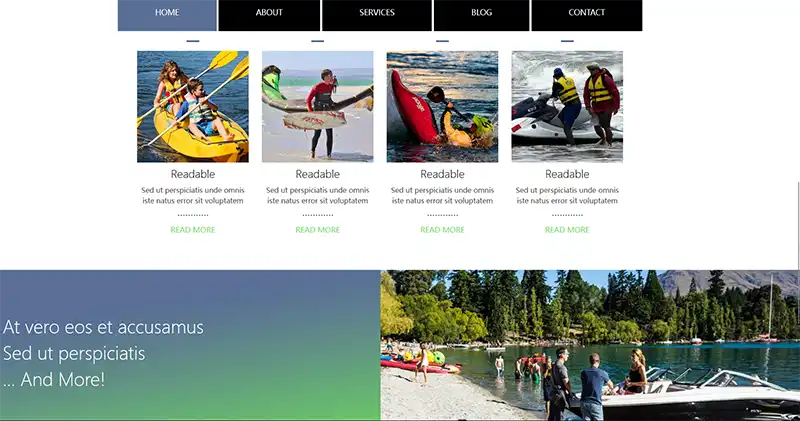 该模板以绿色为主色调,象征着自然、生命与活力,与冲浪运动亲近自然的特点相契合。宽屏设计则为用户提供了更加宽广的视觉体验,使得页面内容更加丰富多彩。
