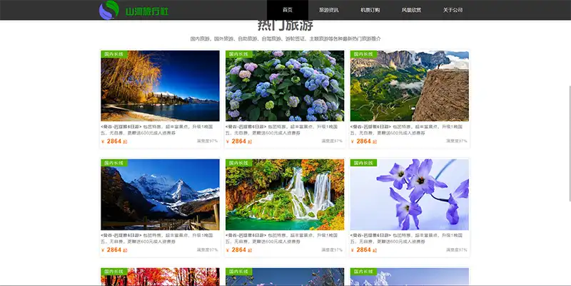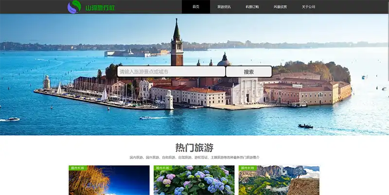 在搜索框中输入“响应式山河旅行社HTML网站模板”或相关关键词进行搜索。