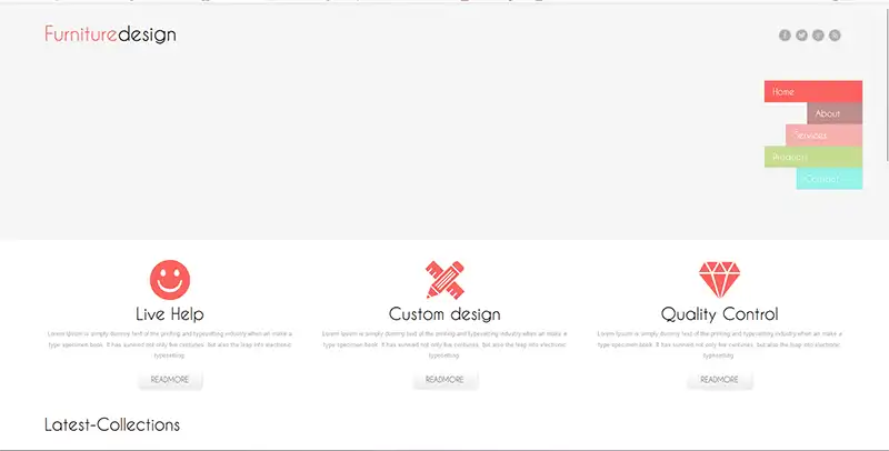 简洁白色的创意家居设计生活馆网站模板介绍如下:
