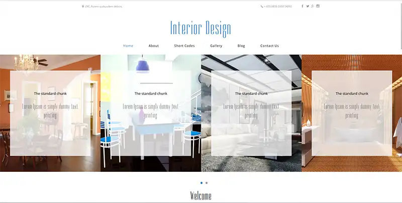 简洁大气漂亮室内设计公司响应式网站模板介绍如下: