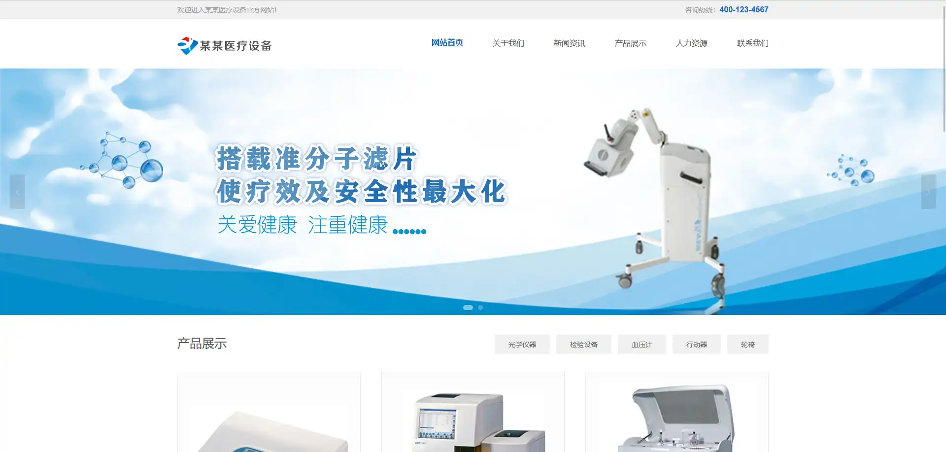 专业性:网站模板应该体现出医疗检测设备行业的专业性和严谨性,使用专业、高质量的图片和视觉元素,展示出设备的专业用途和效果。